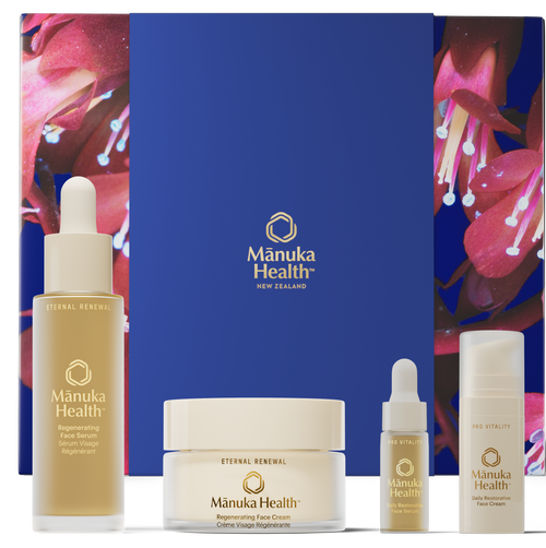 Within this exclusive gift set lies a treasured selection of products from the Pro Vitality and Eternal Renewal collections. Two world-first skincare ranges, enriched with mānuka honey for deep nourishment, the protective power of propolis, and the regenerating wonder of royal jelly.